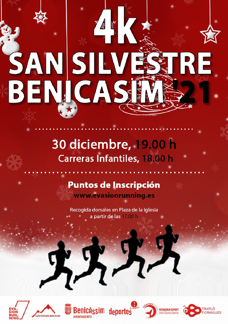 El Excelentísimo Ayuntamiento de Benicasim, organiza con la colaboración de Evasion Running Castellón, el Club Montaña Benicasim y Formigues Benicasim, la SAN SILVESTRE, prueba atlética en la que podrán participar todas las personas que lo deseen, debidamente inscritas mayores de 12 años.