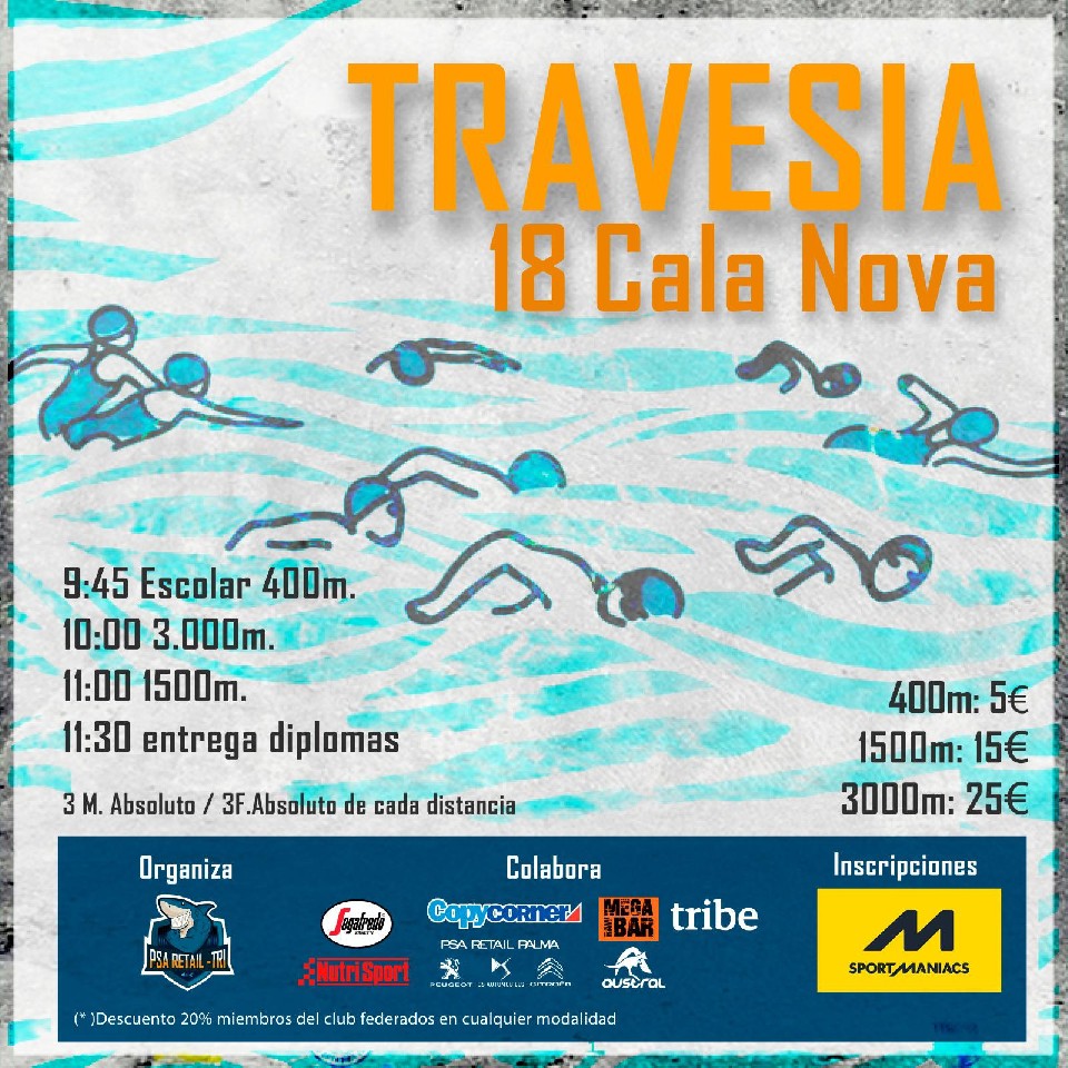 Artículo 1º: El Club DUET-TRI&BIKES organiza la travesía en aguas abiertas el día 18 de abril de 2021 en la playa de Cala Nova en el término municipal de Palma con tres distancias: 400m, 1500m y 3000m.