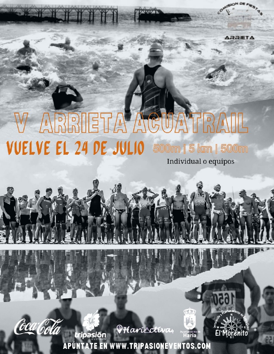 V Arrieta Acuatrail (500 Swim 5 K Run 500 Swim), consta de nadar 500 metros - correr 5 Km - nadar 500 metros.